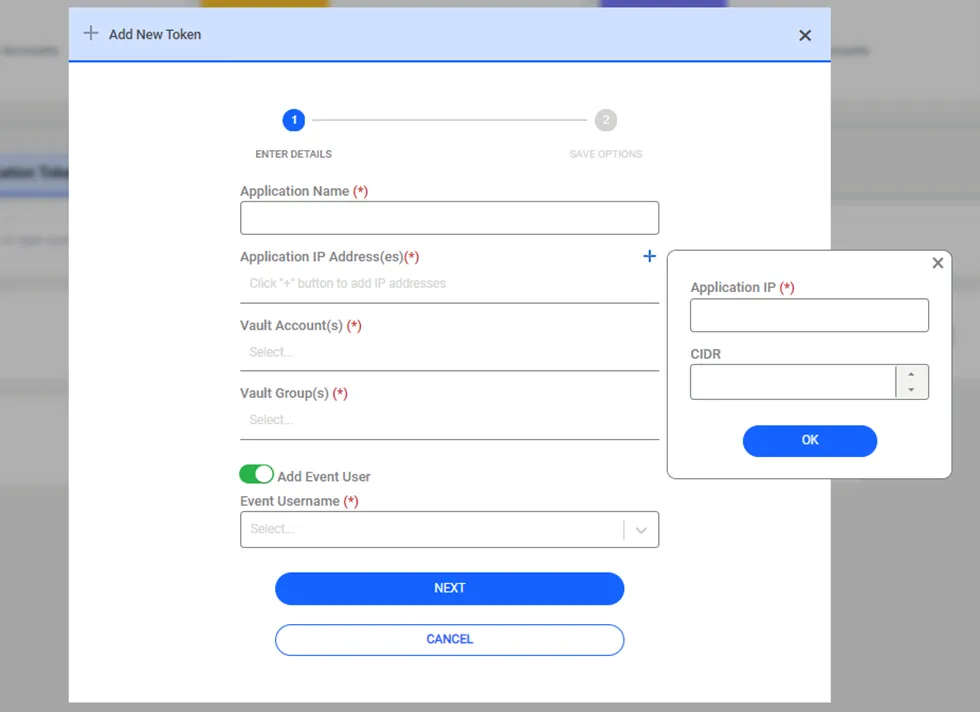 to use an application token rest api, a profile should be created for application token clients in the password vault these profiles are called application token accounts in the kron pam web gui to create an application token account, follow the steps below navigate to secrets > vault open the application tokens tab click the add button enter the application name , event user , and security level you can remove the event user if the account should not be related to any user in the system to enter the requester source ip address, click the edit button next to the application ip address in the pop up screen, enter single or multiple ips with cidr to link password vault account(s), click the edit button next to the vault account field you can link a single or multiple accounts to the application token account linked accounts can be accessed with the same token accounts are searched by name and group full paths to link the password vault group path(s) to the application token account, click the edit button next to the account group field you can link a single or multiple account groups to the application token account linked groups can be accessed with the same token select any restrictions required from the restriction checkboxes you can set time and usage limits select the allow listing accounts checkbox if listing all linked accounts and groups to the application token is required if you don't select this checkbox, the linked accounts list cannot be retrieved through the /listsapmaccounts api enter any optional parameters listed according to your security level choice (details described below) and click save after this step, an application token account is created, and the application token authentication token is shown in the pop up window copy this token by clicking the text box (later, you’ll need to include this parameter in the rest api requests) parameter name parameter value app hash the md5sum value of the application’s executable file (used for basic + pin + path + hash security level) app path the path of the application using aapm (used for all security levels including path) application ip ip address of the requester application application name name of the application requesting the aapm passwords event user the user uses the password (this value is logged in the password vault logs as the user of the password ) if the account should be independent of any user, the event user can be removed if an event user is set and the user permissions are not sufficient to reach the secret, the secret will not be retrieved through aapm os account the name of the account used by kron pam while connecting and checking the path (used for all security levels including path) os account password the password of the account that will be used by kron pam while connecting and checking the path (used for all security levels, including path, and applicable for manual user os credential type only) os credential type the credential type used by kron pam while connecting and checking the path possible values sapm / manual user (used for all security levels including path) os type the operating system type of the server that hosts the application possible values windows / linux / mac os (used for all security levels, including path) pin sending port the port the client application is listening to kron pam sends the pin to this port (used for all security levels, except basic) sapm account the password vault account is used in aapm security level the security level for the aapm process the possible values are basic default, basic aapm flow the application requests the password via api kron pam checks the application’s token and source ip and sends back the password as the response if everything is correct basic + pin the application requests the password via api kron pam checks the application’s token and source ip and, if everything is connected, sends the pin to a specific port the application sends a second request with the pin code and gets it basic + pin + path the application requests the password via api kron pam checks the application’s token and source ip and, if everything is connected, sends the pin to a specific port the application sends a second request with the pin code kron pam checks the path and name of the application and sends back the password if it is true basic + pin + path + hash the application requests the password via api kron pam checks the application’s token and source ip and, if everything is correct, sends the pin to a specific port the application sends a second request with the pin code kron pam checks the path, name, and md5sum of the application and sends back the password if it is true time limit the time limit checkbox enables the users to set an expiry date for the aapm token expiry date the expiry date field allows users to set a deadline for token usage usage limit the usage limit checkbox enables the users to set a limit for maximum usage maximum usage count the maximum usage count allows the users to define a maximum usage limit allow listing accounts the allow listing accounts checkbox enables the linked password vault accounts and groups to be listed through the /listsapmaccounts api